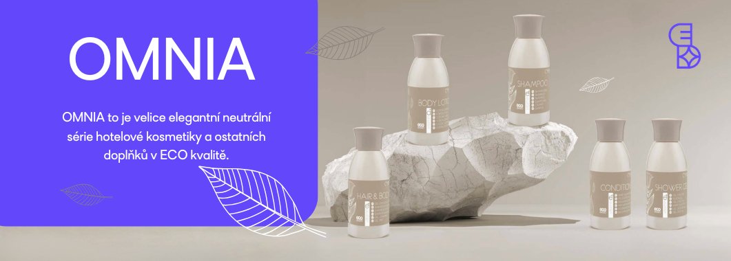 OMNIA to je velice elegantní neutrální série hotelové kosmetiky a ostatních doplňků v ECO kvalitě. Hotelové mýdlo se zeleným čajem o obsahu 20g je zabaleno v elegantní sáčku, kulaté mýdlo 15g obsahuje ovesné vločky. Mýdla obsahují 100% rostlinných olejů. Lahvičky mají obsah 40 ml, doplňovací dávkovače 400 ml.